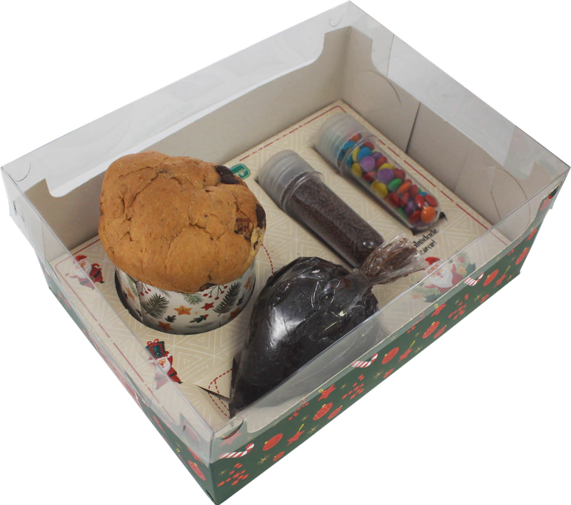 A caixa é ideal para embalar doces, bolos, cupcakes e outros produtos de confeitaria para crianças brincarem de confeiteiro, decorando e recheando seu próprio mini panetone.