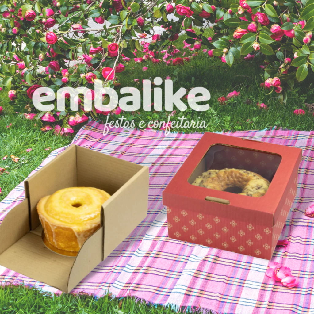 Caixa Decorada Com Visor Para Bolos KRAFT ou VERMELHO